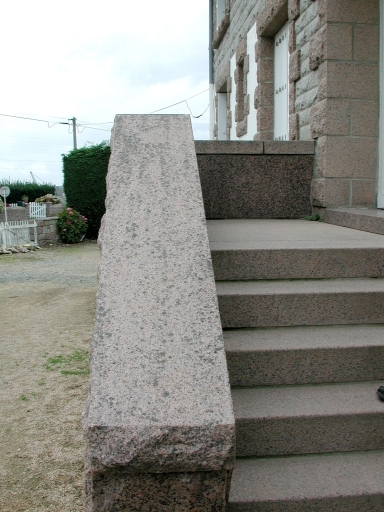 Edifice de plan rectangulaire composé d'un sous-sol semi-enterré, d'un rez-de-chaussée surélevé, d'un étage carré et d'un étage de comble (remaniement). Il est couvert d'un toit à longs pans et pignons découverts à rampants à crossettes. L'escalier de distribution, situé au droit de l'entrée, est placé entre deux murs de refend montant de fond en comble et portant souche de cheminée. Les marches de cet escalier sont en granite poli. Le gros-oeuvre est édifié en moellons de granite gris équarris. Le mur de clôture, les murs apparents du sous-sol, l'escalier desservant l'entrée, l'encadrement des baies, les chaînes d'angles et les rampants à crossettes sont construits en granite rose.