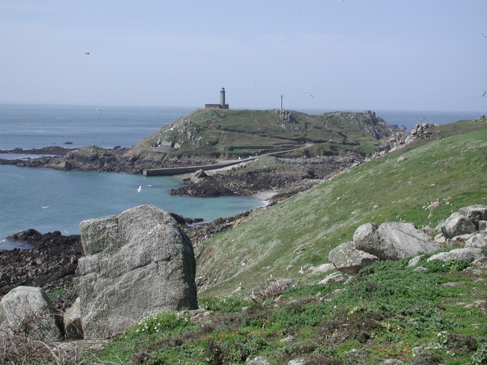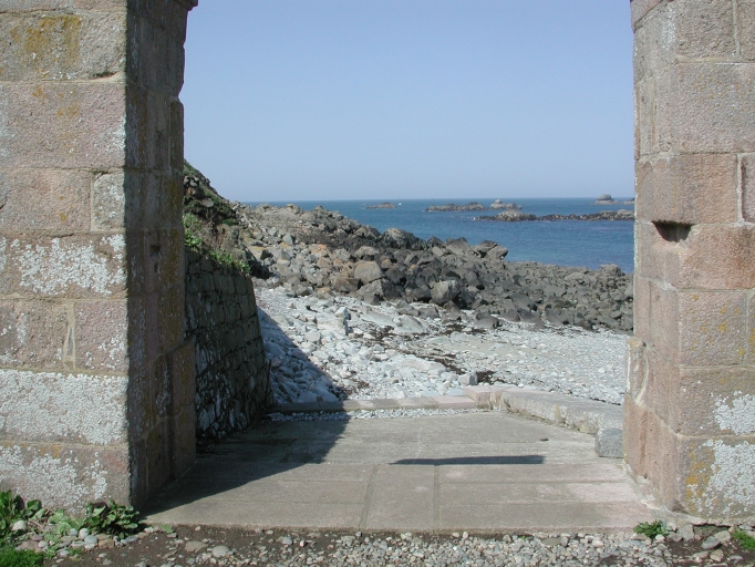 Les mouillages de l'île aux Moines ("Jentilis" en breton) sont indiqués sur la "Carte particulière des Sept-Îles" de Garangeau, datée du 16 novembre 1739 et sur la carte de Bellin, extraite du "Petit Atlas maritime", datée de 1764. La cale actuelle au sud-est de l'Île aux Moines, appelée cale de Gouarlem, a été réalisée en 1949, mais elle s'est appuyée sur un édifice plus ancien, datable de la fin du 19ème siècle, lorsque le service des phares obtint concession des terrains militaires déclassés (1889), à l'époque des grands chantiers d'aménagement du littoral et des îles. Une petite cale débarcadère sinueuse fut établie à Gouarlem, avec un chemin d'accès au phare. Le mouillage de l'île aux Moines était autrefois situé sur la partie nord de l'île, face à l'île Plate, dans une anse naturelle, qui avait pris le nom de Port des Casernes. L'échouage y était aisé par vent de sud mais impossible par d'ouest-nord-ouest. En effet, c'est à cet endroit que les gabarres, pilotées par le gardien Tassel, débarquent l'ensemble des matériaux, les tailleurs de pierres et les maçons, qui vont démarrer le chantier du fort en 1740, et les premiers murs de soutènement en pierres sèches. Par fort vent d'ouest, on utilisait le mouillage du sud-est où est située la cale actuelle ; mais le débarquement restait plus commode au nord de l'île. Le canot déposait ses occupants sur la grève de galets, près des "mottes". La cale nord actuelle qui dessert l'ancienne caserne a été reconstruite par l'organisation Todt pendant la guerre 1939-45, mais une cale plus ancienne a pu exister pendant les siècles antérieurs (sans autre précision de date). Le nouveau phare à reconstruire étant plus important que l'ancien, il fallut dans un premier temps reconstruire la cale de débarquement sud et élargir l'ancien sentier menant au phare pour faciliter l'accès à l'édifice, l'exécution des travaux et la fourniture des matériaux. La cale débarcadère fut réalisée en 1947 et le sentier de 4 m plus large en 1948.