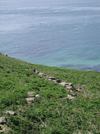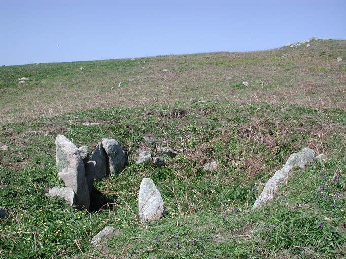 La sépulture présente une chambre funéraire, ayant la forme d'un cercle grossier, construit en pierres sèches (granite), située sur le point culminant de l'île, au début de la déclivité, sur une sorte de plateforme, orientée au sud-est. La cellule mesure environ 4 mètres de diamètre et les pierres visibles dépassent du sol de 1 mètre. En bas de la cellule, les parois sont plaquées de dalles plate. Le couloir d'accès est court et étroit selon la description de Jean-Jacques Salembier. La couverture est réalisée en encorbellement. C'est un cairn, dont l'assise extérieure est disposée en parement régulier.
