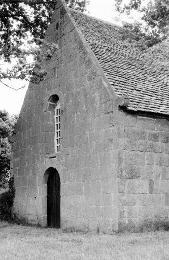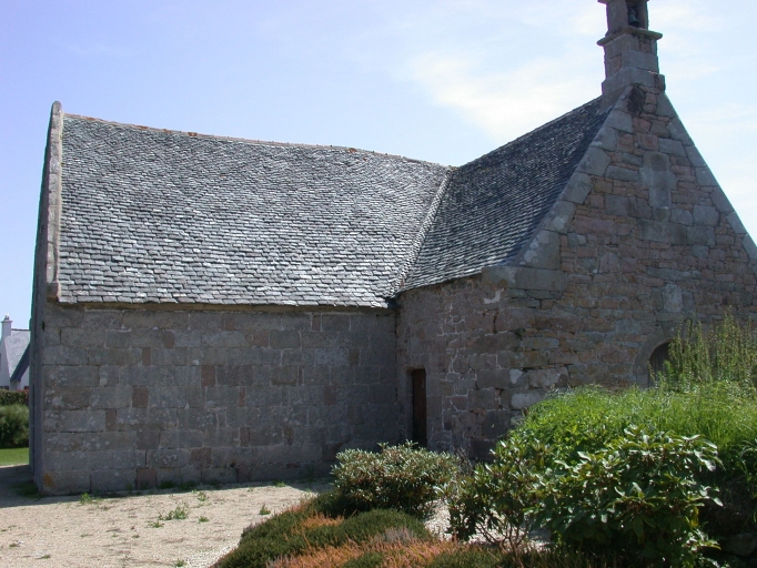 La chapelle est située dans un enclos en surplomb de la route ouvert au nord-ouest d'un portail (18ème siècle) et comprenant au nord un escalier droit à degrés en maçonnerie interrompu par deux échaliers situés de part et d'autre du calvaire. C'est un édifice de plan rectangulaire à vaisseau unique construit en moellons de granite, augmenté d'une aile en retour d'équerre au nord montée en moyen et grand appareil de granite. Le calvaire est composé d'un socle à griffes supportant un haut fût monolithe de section carrée sommé d'une croix ornée d'un Christ en croix à l'avant et d'une Vierge à l'arrière.