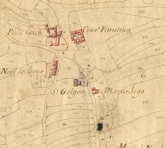 Placée sous le double patronage de saint Gorgon et de saint Dorothée, la chapelle dite de Saint-Golgon est un édifice du 16ème siècle construit à l'initiative d'un membre de la famille de Lannion et agrandi au début du 18ème siècle à la demande d'un seigneur du Launay-Nevet. Selon Emmanuel Mazé, c'est l'évêque de Tréguier qui décida par un acte daté du 15 juillet 1708 de confier l'entretien de la chapelle "nouvellement bâtie" à Gilles Claude Le Noir, recteur de Louannec. Le calvaire, érigé à l'initiative des époux Ian Lucas et Renée Le Caffric, est daté de l'année 1780 (porte la date et le nom des commanditaires). La chapelle, son placître, le calvaire et le mur d'enceinte ont été inscrits à l'Inventaire supplémentaire des Monuments Historiques par arrêté du 10 janvier 1952.