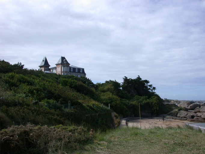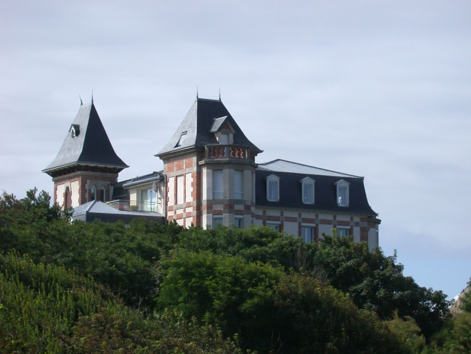 Maison de villégiature construite en granite et brique sur un promontoire dominant le Coz-Pors et le front de mer. Edifice à volumétrie importante, de plan complexe, composé de plusieurs corps de bâtiment de hauteur et d'importance inégale. Eléments de décor : bow-window à balcon à deux niveaux, effet de polychromie résultant de l'emploi de matériaux à deux tons (granite et brique), toits en pavillon.