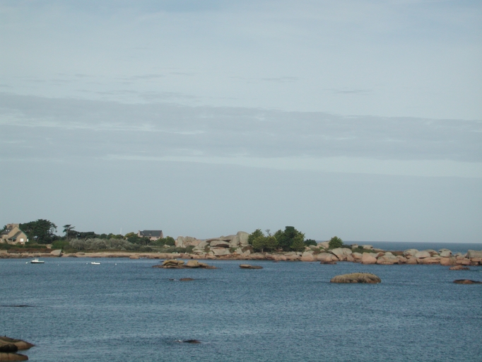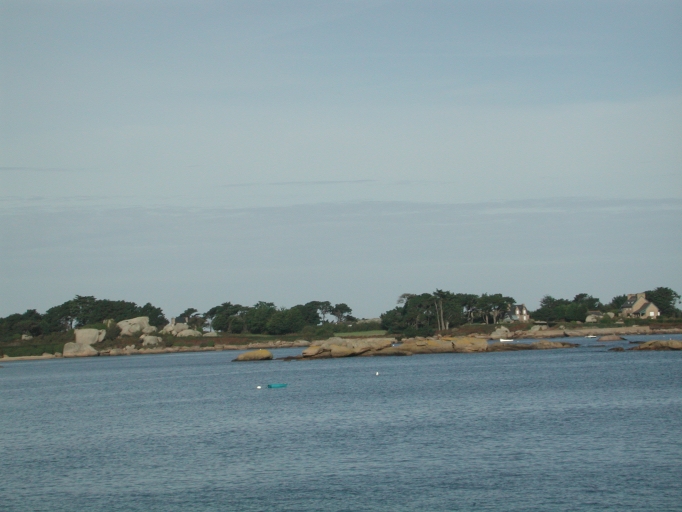 La Grève Rose, qui fait face à l'ouest et reçoit de plein fouet les houles d'ouest, est assez fortement battue, et les sables fins ne peuvent s'y maintenir durablement. Sur la Grève Blanche, au contraire, l'abri procuré par le tombolo de sable qui relie la terre ferme à l'Île aux Lapins, assure une bonne protection contre les houles d'ouest, et la plage est surtout façonnée par les houles du nord. C'est ce sable fin siliceux qui donne sa couleur blanche à cette grève, comme l'orthose du granite à gros grains donnait sa couleur rose à l'autre. L'Île aux Lapins était nommée dans la carte de 1774 "Lisle de la Neige", traduction de "Enes Erc'h". Les deux grèves on toutes deux reculé d'environ 20 mètres en deux siècles à leurs extrémités, au contact du tombolo, alors qu'à l'autre bout elles étaient stables. La dune de la Grève Rose a davantage reculé après la seconde guerre mondiale à cause de la sur-fréquentation des lieux, où l'on a construit plusieurs maisons. Néanmoins, selon Jean-Pierre Pinot, la stabilité de ces deux grèves restera incertaine aussi longtemps que le tombolo qui les sépare continuera à perdre de la substance. Il est difficile d'envisager sur un aussi beau site des défenses lourdes, mais si l'on considère qu'au 18ème siècle les grèves étaient plus étoffées parce que le massif granitique du milieu du tombolo portait une île, on pourrait peut-être rétablir là un môle rocheux élevé, en reliant la roche à l'angle du terre-plein par quelques très gros blocs de même nature, venant de l'estran et non d'une carrière.
