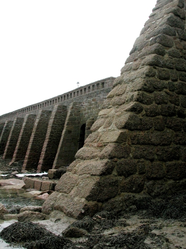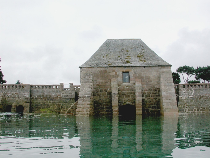 Le moulin à marée du Grand Traouïèro Reconstitution des différentes étapes de la vie du moulin : - 1375 : situé dans la vallée du Grand Traouïero ou "Trov Meur", la Grande Vallée, l'édification du moulin à marée de Trégastel fut une conséquence indirecte de la Guerre de Succession (1341-1364), qui ravagea le pays et divisa les seigneurs bretons, parmi lesquels le chevalier Bryant de Lannyon. Celui-ci fut récompensé pour sa loyauté (ses manoirs avaient été détruits) par une charte du roi de France Charles V, qui lui octroya en 1375 le droit de mouture et de pêche sur l'ensemble de la chaussée du futur moulin à était autorisé à construire. - 1509 : inventaire des biens du chevalier Bryant de Lannion : renable des moulins à mer accordé à Prigent Le Dret et à Yvon Coz, meuniers (baux à ferme). Le moulin existerait depuis au moins 1472. - 1566 : Edit de Moulins : principe d'inaliénabilité du domaine royal - 1762 : inventaire du Cruguil : droits sur les garennes et moulins à mer (aveu). Il est précisé "droits de pêcherie et sècherie de congres du 1er mai à la Sainte Croix de septembre, les isles étént entre Millau et le Port Blanc, aux costes des paroisses de Perros, Trébeurden, Trélévern, Trévou, Trévignec" - 1764 : date gravée sur le linteau de reconstruction du moulin - 1846 : rehaussement de la toiture - 1872 : classement de la chaussée en voirie par arrêté préfectoral - 1900 : achat du moulin par Le Brozec - 1914-1918 : le moulin est réquisitionné par l'armée pour fournir de la farine aux soldats - 1918-19 : travaux d'aménagement pour la réalisation de la voie ferrée (élargissement et sur-évélation de la chaussée) - 1925 : conflit entre Isidore Etienne, carrier et l'administration des Domaines - 1931 : inscription du site à l'Inventaire - 1932 : décès du dernier meunier Toussaint Le Brozec - 1937 : apport des terrains et du moulin dans le capital de la SA Etienne - 1941 : transaction entre l'Etat et le carrier Etienne concernant la propriété de l'étang et de la chaussée - 1945 : inscription à l'Inventaire des abords de l'étang (loi de 1930) - 1970 : vente du moulin appartenant à la Sté des Granits Etienne et projet de commerce (crêperie). Un projet de musée des ATP aurait été proposé - 1986-1980 : achat du moulin par la commune de Trégastel et réfection de la toiture en ardoises - 1978-80 : marées noires et nettoyage du site - 1980-2000 : ré-aménagement intérieur du moulin et ouverture au public, projet de restauration du mécanisme du moulin (prosition de l'amoulangeur Jean Peillet). Selon la tradition orale, l'étang était encore l'objet au milieu du 20ème siècle d'une pêche collective à l'époque estivale, le meunier ne disposant pas d'un droit de vente du poisson.