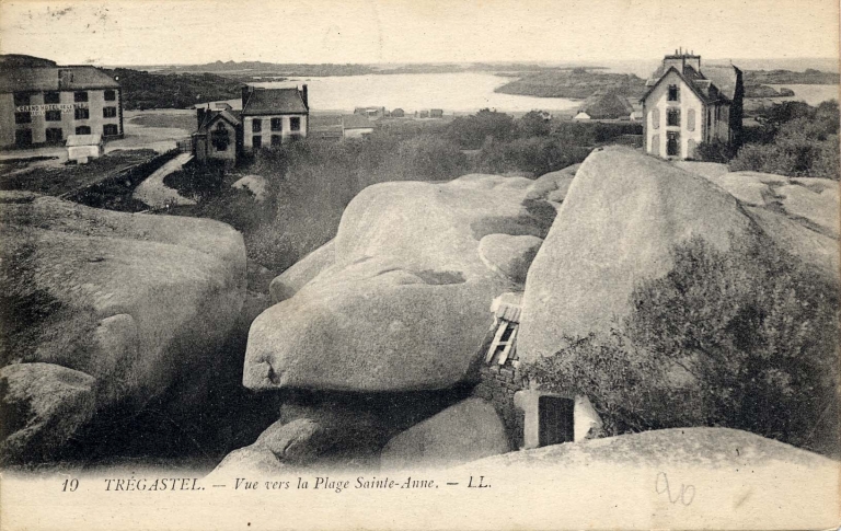 Nous avons repéré (3 édifices) et étudié plusieurs maison troglodytes (2 édifices) sous un abri de rocher, situées sur la commune de Trégastel, qui témoignent d'une forme d'habitat permanent particulier, lié d'une part à la configuration rocheuse du littoral (chaos granitiques), d'autre-part à un phénomène de marginalisation volontaire de certains "personnages", qui ont pu défier la chronique locale par leurs façon de vivre (très rustique) et leurs usages, en prenant possession d'une portion de l'espace littoral, mi-publique-mi-privée ("Zantig"). Cette situation "excentrique" a pu en son temps alimenter bien des représentations culturelles particulières du littoral et des hommes "en marge" qui l'habitent et en tire partie pour leur "survie". Ces habitats sont datables du 4e quart du 19ème siècle (Kergantuil, Golgon) et de la 1ère moitié du 20ème siècle (Zantig, le Rocher du Sauveur). Nous avons étudié particulièrement la maison et le personnage de "Zantig" encore très présent dans la mémoire locale sur l'Île aux Lapins, la maison troglodyte dans le quartier de Golgon, dont la grange est particulièrement ancienne, et le site du rocher du Sauveur, réaménagé dans les années 1960 pour accueillir l'aquarium de Trégastel, à Pors Coz. L'allée couverte de Kergantuil a aussi été occupée et aménagée avec des murs au début du 20ème siècle, avant d'être classée MH le 8 août 1848.