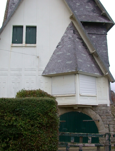 Maison de plan massé dont l'élévation antérieure est tournée vers la mer. Elle est composée d'un étage de soubassement édifié en moellons de granite équarris laissés apparents (référence au régionalisme), d'un rez-de-chaussée surélevé et de deux étages de comble abrités sous un toit à forte pente aux versants asymétriques. Elle comprend également sur l'angle postérieur droit un corps secondaire couvert d'un toit à croupe. Le rez-de-chaussée côté rue, les élévations latérales et le corps secondaire sont édifiés en faux pan de bois en béton peint en blanc (référence au style anglo-normand). L'élévation antérieure est recouverte en grande partie d'un essentage d'ardoises, tout comme la partie inférieure des souches des cheminées qui présentent des contreforts montés en moellons de granite équarris laissés apparents. L'étage de soubassement abrite une remise à automobile ouverte d'une grande baie en plein cintre.