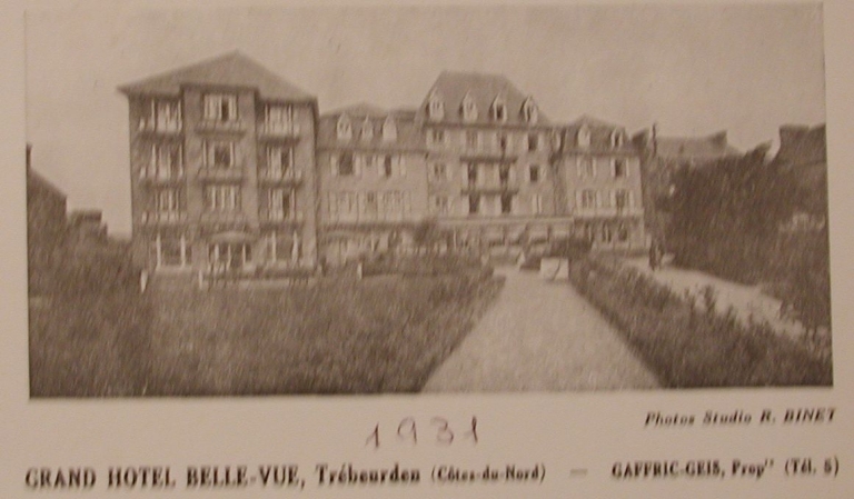 L'Hôtel Bellevue a été construit vers 1910-1911 au lieu-dit "Chrec'h Héry" et a ouvert officiellement le 24 juin 1911, sous la direction de Joséphine Le Gaffric. Il a été réaménagé plusieurs fois au cours de la 1ère moitié du 20ème siècle (en 1922, en 1926 et en 1931), avec deux ailes rajoutées, rehaussées de plusieurs étages ; deux bâtiments annexes ont complété par la suite son offre d'hébergement. Avant la guerre 1939-45, l'hôtel disposait de 105 chambres en totalité. La succession de l'hôtel a été assurée par la fille de Madame Le Gaffric, Suzanne, épouse Romaingeis, qui a tenu cet établissement avec son mari jusqu'à son décès en 1966. La petite fille de Joséphine Le Gaffric, Madeleine Boivin a poursuivi ensuite la gestion de l'hôtel avec sa soeur Maryse et son frère Yves-René. L'Hôtel Bellevue a terminé sa carrière en 1967 avant d'être vendu pour être transformé en appartements. Le bar "L'Artimon", situé en face de l'hôtel, rue de Molène, a été ouvert en 1949. Il fut également gèré avec l'hôtel jusqu'en 1967. L'ancien établissement "L'Artimon" est devenu la résidence principale de Madeleine Boivin, après quelques travaux d'aménagement. Les fresques peintes par Louis Garin (1888-1959) dans la salle de l'Hôtel Bellevue sont restées la propriété du nouvel acquéreur : elles racontent une partie de la vie maritime de la Côte de Granit Rose, à une époque où les touristes côtoyaient encore les activités traditionnelles du littoral trégorrois et participaient aux régates locales, en s'initiant à la pêche sportive de loisir (notamment la pêche au thon) et aux bains de mer.