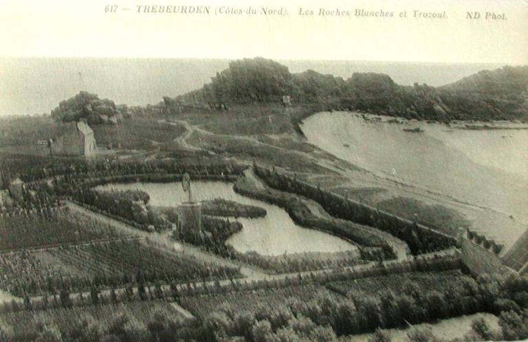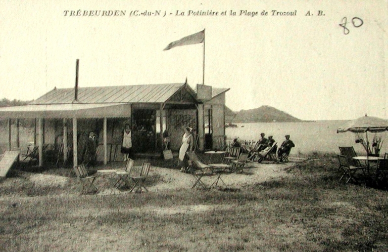 Le front de mer de Trozoul était hier peu urbanisé, c'est à dire avant la 1ère moitié du 20ème siècle. La côte était en partie cultivée si l'on regarde les photographies de la fin du 19ème siècle et de la 1ère décennie du 20ème siècle.Les boisements ont fait leur apparition en ce début du 20ème siècle, comme plantations d'agréement pour les premiers hôtels (Kernelly) et pour le bois d'oeuvre. Cependant, Régis de Saint-Jouan rapporte un raz-de-marée dans la nuit du 29 au 30 janvier 1836, qui aurait détruit "une vingtaine de maisons" (p. 136). Le développement du tourisme date du 4ème quart du 19ème siècle et on peut remarquer que les premiers hôtels ont vu le jour sur le front de port vers 1905 (Hôtel du Martret). Les premières villas vont suivre mais sanq qu'aucun aménagement littoral spécifique ait été entrepris. Le trait de côte est resté naturel, même si le front dunaire a commencé à reculer, avec les premières cabines de bains en bois. Les aménagements portuaires restent modestes jusqu'en 1980, avec la création du nouveau port, des parkings et de nombreux enrochements rocheux et ouvrages de béton, qui vont noyer les anciennes cales. Des immeubles vont vite combler le "vide" immobilier du front de port, en épargnant le site des Roches Blanches, classées MH et du Castel, qui furent toutefois annexées par des constructions nouvelles.