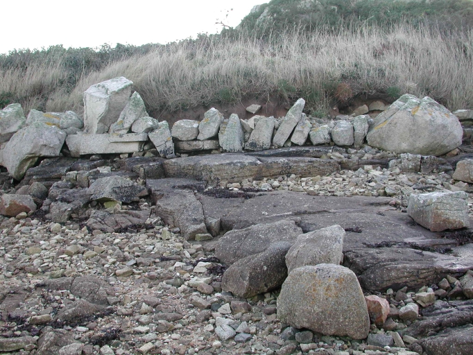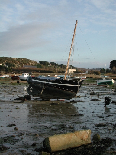 La presqu'île de Toeno La presqu'île de Toëno est relié au continent par un tombolo de sable. La dune sépare la plage du marais, elle a été enrochée récemment. La falaise de loess recule progressivement. Le marais maritime compte 14 espèces de plantes marines. La presqu'île de Toëno avec ses landes, côté terre et ses rochers, côté mer offre trois sortes de granite différents : le granite de Ploumanac'h, le granite de Goas Treiz et le granite de l'Île Grande, qui furent en partie exploités (Odile Guérin, APEGIT). Le flanc est de la presqu'île est composé de granite gris du type Île-Grande qui n'y a pas été extrait. Le flanc sud-ouest est de granite du type Agathon, mais celui-ci est "truffé" d'énormes enclaves de granite du type Traouïero, le même que dans la carrière voisine de Kerleo. Il n'y avait pas ici de grand chantier d'extraction, on observe seulement la trace des outils, mais peu de déchets de taille : l'extraction y fut donc limitée. La jetée de Toëno, construite vers 1930, de l'autre côté, vers l'est, à l'abri des vents a servi à charger le granite extrait à Kerleo, en particulier les pavés transportés dans des tombereaux tirés par des chevaux. Le marais est aujourd'hui utilisé comme zone d'échouage et d'hivernage pour les bateaux. Nous avons pu observer les traces de trois croix gravées (de tailles différentes entre 40 et 15 cm de hauteur) sur un rocher à l'ouest de la presqu'île proches du sentier qui fait le tour de la presqu'île, témoignage selon la tradition orale d'un naufrage où périrent un adulte, un adolescent et un jeune enfant (non daté). Dans le marais recouvert à marée haute, la présence d'un menhir (avec à côté vers le nord un autre menhir cassé à terre) prouve qu'il y a 5000 ans, le niveau de mer était plus bas. Etno-écologie des marais littoraux : Toënno Synthèse d'après le rapport de J.P. Pinot "L'évolution du littoral autour de la baie de Lannion et sur la Côte de Granit Rose", SMVM de la baie de Lannion, 1993. L'évolution des usages pastoraux du marais de Toënno montre comment la végétation d'un marais littoral peut évoluer en fonction des activités humaines. Jusqu'au 3ème quart du 20ème siècle, les cultivateurs-éleveurs de Trébeurden faisaient encore paître leurs vaches sur le marais de Toënno ; lesquelles broutaient de préférence l'Obione portulacoïdes, qui ne pouvait donc pas s'étendre dans les parcelles où elles avaient accès, et ne dominaient que les abrupts où elles ne pouvaient pas s'aventurer. La progression de cette plante grasse était régulée par cet usage qui indirectement limitait la sédimentation et l'envasement du marais, colonisé par cette invasive. Lorsque cet usage s'est arrêté, l'Obione a envahi le marais et les joncs eux-mêmes ont reculé sur presque toute le pourtour de chacun des îlots qu'ils formaient. Des deux chemins qui traversaient jadis le marais, le plus septentrional existe toujours, plus large et plus vaseux, le second a disparu. Enfin, le recul du tombolo, mais aussi la circulation des voitures sur son revers, ont provoqué l'invasion du fond du marais par les sables dunaires, et le marais par conséquence, a reculé d'une quinzaine de mètres. Joint au recul des joncs à l'autre extrémité, cela aboutit aujourd'hui à ce que la surface du marais n'est plus guère que la moitié de ce qu'elle était autrefois.