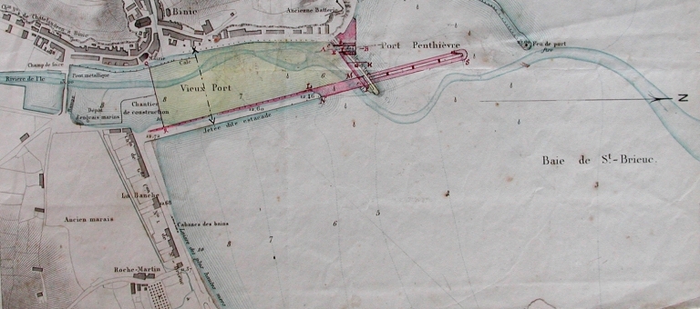 En 1872, de nouvelles avaries au môle de Penthièvre donnent prétexte au conseil municipal pour demander la création d'un bassin propre à recevoir à flot les navires au "Port de Penthièvre" ou "Port Neuf", qui offre à l'époque, 860 mètres d'ouvrages dont 360 mètres dévolus au cabotage sur 700 mètres de quais.