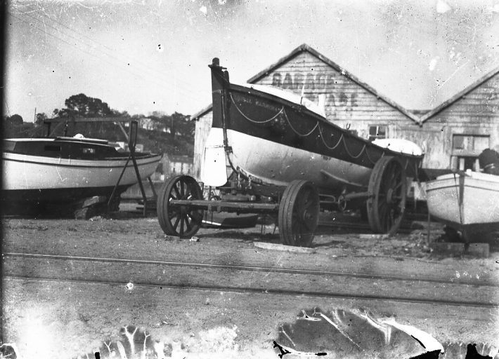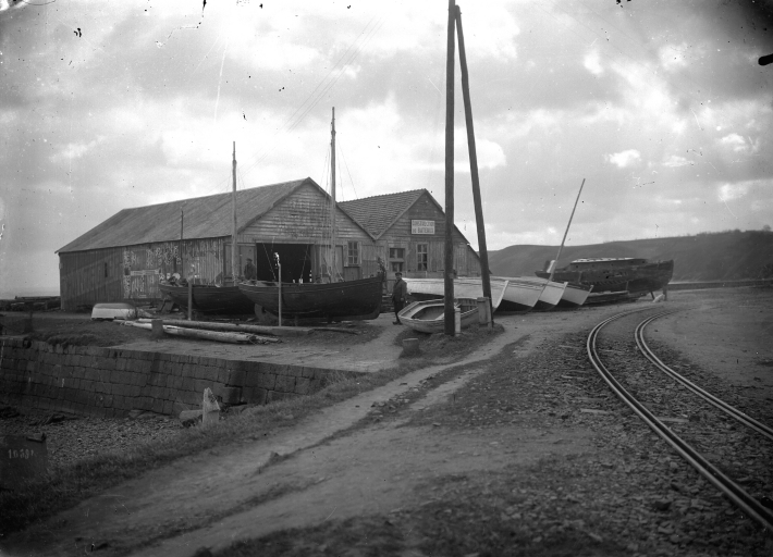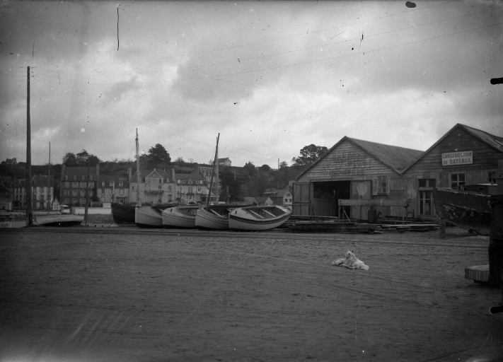 Les chantiers navals Les premiers chantiers navals qui alimentaient la flottille de grande pêche et de cabotage avec les baraques des calfats et des menuisiers s'abritaient au pied de la falaise (actuel quai Jean Bart), des forges également, dés la 16ème siècle, alors que les navires en réparation, venaient s'échouer, à grande marée, en amont, dans les marécages situés derrière la chaussée de la Banche. Tout au long du 19ème siècle, les chantiers navals sont installés sur la Banche et utilisent la vieille cale de construction pour construire et lancer les navires. Louis Minier dirigeait le chantier naval de la Banche en cette fin du 19ème siècle, relayé ensuite par Chevert et Ollivier. En 1848, un mur de soutènement est réalisé autour de la cale de construction. Pendant la 2ème décennie du 20ème siècle, la construction navale décline en même temps que la grande pêche et en raison de la guerre, pour redémarrer ensuite avec la commande d'une dizaine de navires pour l'armement binicais et d'autres armements. En 1920, Le chantier de construction navale de Binic emploie 81 ouvriers et construit cette même année 3 bateaux, totalisant 678 tonneaux (sources : statistiques des pêches ISTPM), alors qur Paimpol dispose pour ses 2 chantiers de seulement 15 ouvriers. Les navires de pêche, de plaisance et de cabotage viennent en carénage et en réparation dans le port-refuge de Binic. Le chantier Chevert se modernise en 1913 avec l'acquisition de 2 scies à ruban et d'une machine à vapeur de 25 chevaux, pour le cintrage du bois. Il faut 3 mois pour construire un caboteur de 200 tonneaux ou une goélette islandaise de 250 tonneaux. Les voiles sont réalisées dans les ateliers paimpolais (Dauphin). Le chantier emploie une quarantaine d'ouvriers pendant le 1er quart du 20ème siècle. Le navire "La Mascotte", goélette islandaise de l'armement Le Suavé-Galerne, de 33 m de long, est lancée le 12 février 1910. Le Chevert et Ollivier, associés jusqu'à la guerre, se séparent ensuite. Ollivier reste seul directeur du chantier jusqu'en 1919. Le chantier naval binicais est alors repris par Renoux et Sarcey, qui disposent d'un autre chantier au Légué. Ils construisent des navires en tous genres, autant pour la pêche et le cabotage que pour la plaisance : des goélettes de 150 à 200 t, des chalutiers de 30 à 40 t.. Le chantier posséde une scierie à vapeur, une fabrique de poulies, une forge, un atelier de galvanisation, un magasin de voilerie et gréements, ainsi qu'un atelier de réparations navales. Le vieux chantier est détruit en 1951. Les deux derniers charpentiers sont Lionnais et Jean-Louis Royer. Les deux derniers navires construits à Binic sont des trois-mâts-goélettes : en 1923, la "Flora" pour un armateur malouin Perrigault, et en 1924, le "Lieutenant-Boyau", qui devait couler en Islande le 12 mars 1935 (d'après les recherches historiques de Christian Querré et de Philippe Leribaux). Entre 1920 et 1922, les armateurs de Binic, avec l'appui de la commune et de la Chambre de commerce souhaitent réaliser un gril de carénage, afin de pouvoir redoubler les nombreux navires qui viennent en réparations dans le port. L'ouvrage en projet serait construit contre le parement ouest de l'éperon qui s'avance à l'entrée du vieux port : une plateforme sur laquelle reposeraient des tins. Cependant, l'administration refuse d'accorder la concession nécessaire à cet établissement (AD 22, S Suppl. 90).