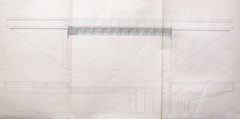 AD Côtes d'Armor. Série S Suppl. 91. Plan, élévation et coupe longitudinale et transversale du pont métallique, 1899.