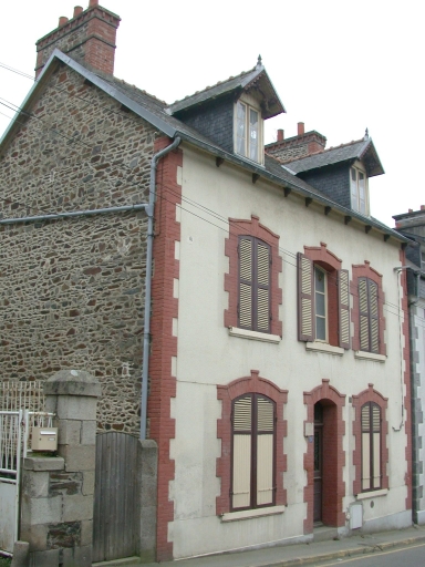 Maison de type ternaire construite en moellons de granite et schiste. Elle est composée d'un rez-de-chaussée, d'un étage carré et d'un étage de comble éclairé par deux lucarnes-pignon à fermette débordante. Les chaînes d'angles, les souches des cheminées et l'entourage des baies couvertes en plate-bande sont édifiés en brique. Eléments de décor : fermettes débordantes, brique.