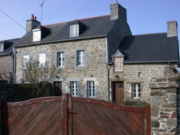 Maison mitoyenne de plan rectangulaire simple en profondeur construite en moellons de schiste et granite. Elle est composée d'un rez-de-chaussée à deux pièces ouvert au centre de deux portes d'entrée jumelées et d'un étage carré. Dépendance latérale basse à droite.