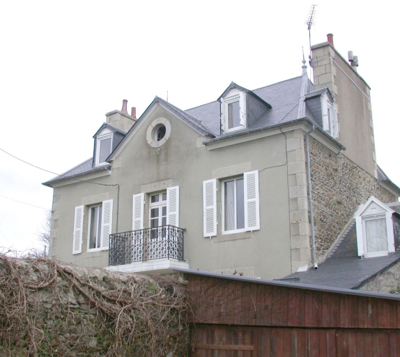 Maison de type ternaire construite en moellons de granite et schiste sur un plan double en profondeur. La travée axiale antérieure est affirmée par une baie à balcon et couronnée d'un pignon ajouré d'un oculus. Eléments de décor : ferronnerie, épis de faîtage en zinc, pignon, toit à croupes, lucarnes.