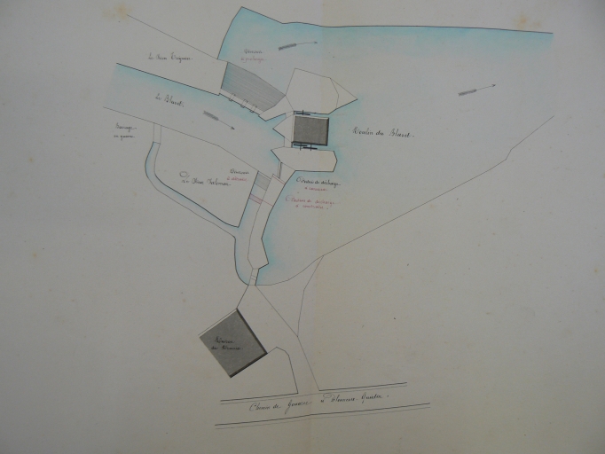Parties constituantes non étudiéesatelier de fabrication, bâtiment d'eau, entrepôt industriel, bief de dérivation, vanne, logement patronal