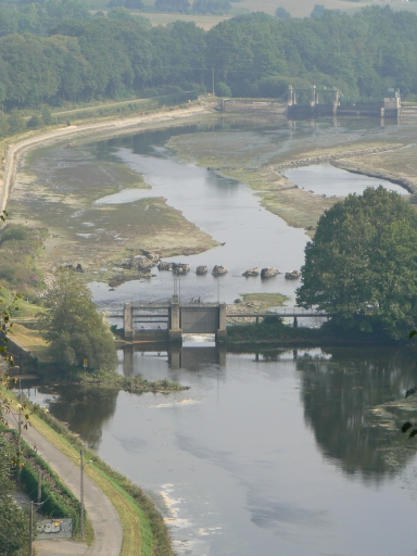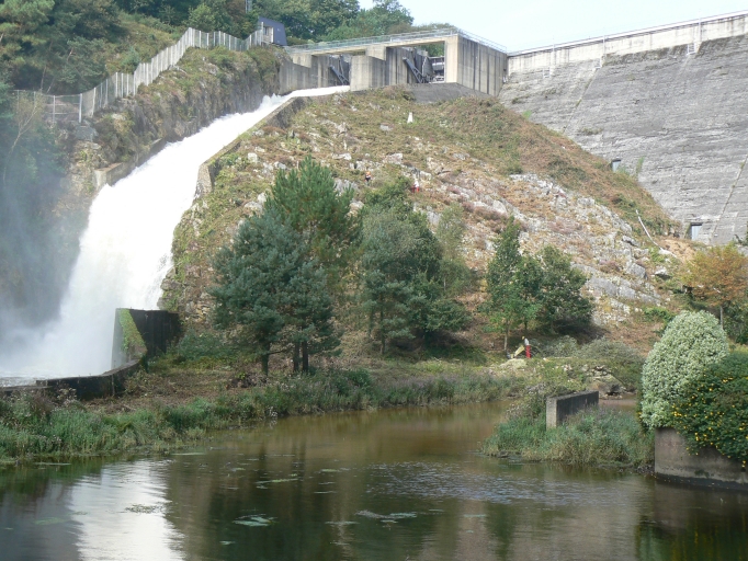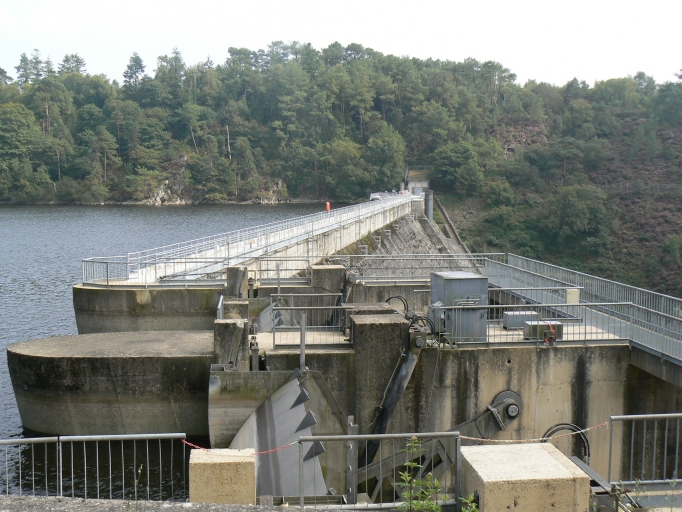Le barrage de Guerlédan est du type poids en béton. Il a une longueur en crête de 206m et une hauteur de 44m au dessus du talweg. Il est équipé de deux conduits de vidange de fond dont le débit maximum évacuable pour chacun d'eux est de 21m3 par seconde, d'un déversoir de crue en rive droite de 22m de long à 2 passes équipées chacune d'une vanne secteur munie d'un clapet, de quatre prises d'eau capables d'absorber un débit maximum de 49m3. La retenue du barrage a une superficie de 304 ha. Quatre conduites forcées (3 de 1,70m de diamètre et une de 2m) relient les quatres prises d'eau aux groupes turbo-alternateurs situés dans la centrale (étudiés). Cette dernière est constituée de deux halles en rez-de-chaussée à pan de fer couvertes en tuile mécanique. Celle qui renferme les quatre groupes turbo-alternateur porte sur son pignon la date de 1930. Elle est éclairée par de grandes baies vitrées et le sol est recouvert par un carrelage à motif géométrique. Perpendiculairement à cet ensemble, un bâtiment à un étage carré, fortement remanié, qui avait à l'origine les mêmes caractéristiques que la centrale et devait contenir des transformateurs, abrite les bureaux de l'entreprise. La centrale restitue les eaux turbinées dans un premier bassin formé derrière le "petit barrage de Guerlédan" situé à 650m en aval du barrage. Il avait pour fonction initiale le contrôle des crues et le maintien de la navigation du canal de Nantes à Brest. Le "petit barrage" prolonge l'écluse de Guerlédan. Il est constitué, de la rive gauche à la rive droite, d'un déversoir de 9m de long, de deux vannes Stoney et d'un second déversoir de 18m de long. La retenue est de 80 000 m3. A environ un kilomètre du site, se trouve le transformateur haute tension de l'usine. Il a un toit à longs pans et est rythmé par des travées de fenêtres (6 en façade, 4 en pignon), avec une ouverture large et haute sur sa façade postérieure, surmontée de l'inscription S.I.T.E.L. Il est flanqué à l'ouest par un bâtiment légèrement plus bas et à toit en terrasse, aux fenêtres obstruées. Sur sa façade postérieure s'appuie un édifice aux mêmes caractéristiques avec deux travées de fenêtre. Au nord se trouve un grand bâtiment en béton. Il s'agit vraisemblablement du transformateur construit sous la direction des allemands pendant la Seconde Guerre mondiale pour sécuriser la fourniture d'électricité à l'arsenal de Lorient. A proximité du site, ont été construits plusieurs logements destinés au personnel. La maison du directeur comporte un rez-de-chaussée surélevé et un étage carré. Elle possède un toit à longs pans en ardoise et la partie inférieure et les chaînages d'angle des murs sont en grès. Un peu plus loin, un bâtiment en rez-de-chaussée, dont le pignon porte l'inscription EDF, servait de garage aux véhicules de l'usines. Puis on rencontre deux maisons jumelles avec un comble à surcroît. Enfin, sur la route qui mène à la centrale ont été construits 4 groupes de 2 maisons jumelles couvertes par un toit à longs pans en ardoise. Elles ont un étage carré et un comble à surcroît. Le mur du rez-de-chaussée est en grès, les ouvertures ont des linteaux en béton. Celles de l'étage sont en plein cintre avec un encadrement en granite. En amont, le barrage de Saint-Aignan construit en 1935 détermine une retenue de 240 000 m3 sur une superficie de 10ha. Il a une longueur de 180m. Il est constitué, de la rive à la rive droite, d'une digue en terre de 30m de long, d'un barrage mobile de 16m équipé de deux vannes Stoney, un déversoire de 16m de long, et d'une deuxième digue en terre de 107m. Le groupe alternateur qui y a été installé en 1989, de type siphon, est équipé d'une turbine hélice Kaplan de 480 kW de puissance. A l'aval du barrage de saint-Aignan la restitution des débits se fait directement dans le lit du Blavet dit "Blavet naturel".