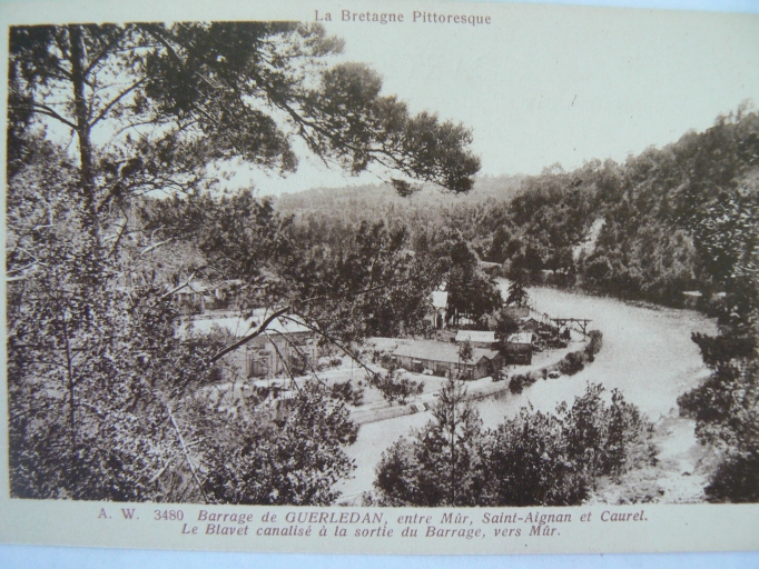 Le 30 août 1923, un décret accorde à la Société Générale d'Entreprise (SGE) la concession de l'aménagement du barrage hydro électrique de Guerlédan sur le Blavet. Parmi les premiers actionnaires se trouve la ville de Lorient qui y voit ainsi l'opportunité d'obtenir une électrification rapide. En mars 1924, un décret en Conseil d'Etat substitue la société de l'Union Electrique Armoricaine à la SGE. Le 21 mai 1924, les travaux d'établissement de l'usine hydroélectrique de Guerlédan sont déclarés d'utilité publique. Le 26 octobre 1930 est signé l'arrêté prefectoral de mise en service de l'usine. En novembre 1933, la construction d'un quatrième groupe hydroélectrique et d'un second bassin de compensation situé dans la commune de Saint-Aignan (56) est déclarée d'utilité publique. En 1946, EDF récupère les biens, droits et obligations de l'exploitation, en vertu de la loi sur la nationalisation du gaz et de l'électricité. En 1953, un avenant à la convention de concession abandonne l'idée d'imposer à la société concessionnaire la mise en place d'un système permettant le passage des bateaux, en raison du coût trop élevé des travaux et de la diminution importante du trafic sur le canal de Nantes à Brest. En 1989, un groupe turbo-alternateur de 780 kVA aest installé au barrage de Saint-Aignan. La concession des chutes, arrivée à expiration en 2005, a été renouvelée.