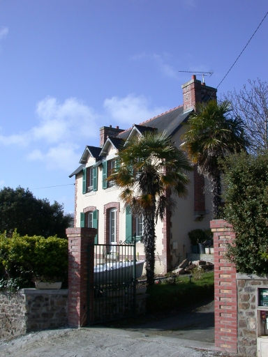 Maison construite en moellons de granite et schiste. Elle est composée d'un sous-sol, d'un rez-de-chaussée surélevé à deux pièces et d'un étage en surcroît éclairé par trois lucarnes-pignon. La façade antérieure est rythmée par trois travées de baies régulières. Eléments de décor : brique (encadrement des baies et chaînes d'angles), ferronnerie, lucarnes-pignon.