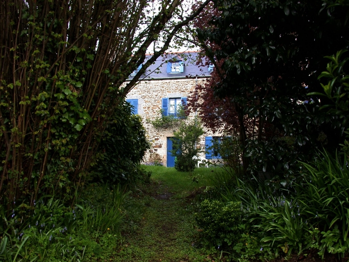 Maison mitoyenne de type ternaire construite en moellons de granite et schiste laissés apparents.