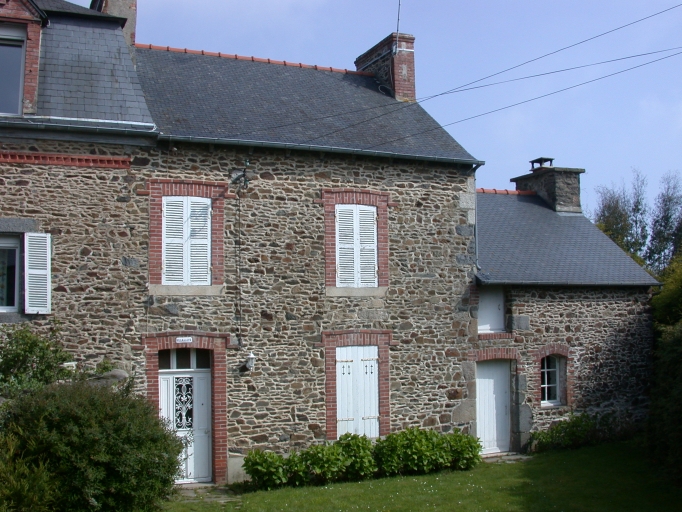 Maison mitoyenne à pièce unique au rez-de-chaussée et à un étage carré construite en moellons de granite et schiste. Elle est flanquée d'une dépendance basse à droite. L'encadrement des baies est édifié en brique.