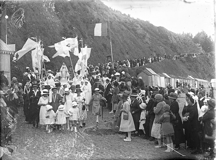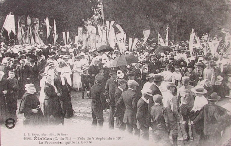En 1878, Mme Levivier, estivante parisienne, place une statue de Notre-Dame-de-Lourdes dans une grotte des Godelins. La grotte prend l'appellation de "Grotte de Notre-Dame-de-Lourdes" en 1883 ; elle est inaugurée par Oscar Charlemagne Legris et son épouse Victoria en 1897. Cette grotte naturelle, couverte de nombreux ex-voto, accueillait un pardon annuel. La dernière cérémonie eut lieu en 1968. Aujourd'hui la grotte est abandonnée. L'érosion de la falaise par la mer et les eaux pluviales, ainsi que les éboulements de terrain ont condamné la grotte comme d'autres grottes d'Etables. La perte de ferveur religieuse a participé de la déshérence de ce lieu hautement symbolique et porteur de sens. Cependant les grottes ont participé de la renommée de la commune d'Etables, avec l'appellation donnée par un journaliste en 1909 "Etables des Grottes". Les fêtes civiles et religieuses sur la plage des Godelins ont accompagné pendant plus d'un demi siècle le développement touristique de la commune d'Etables.