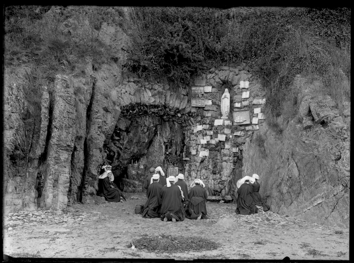 La grotte de Notre-Dame-de-Lourdes est comme les autres grottes d'Etables Grotte une grotte naturelle taillée dans la falaise, sur le haut et au nord de la plage des Godelins et du quai des Godelins.