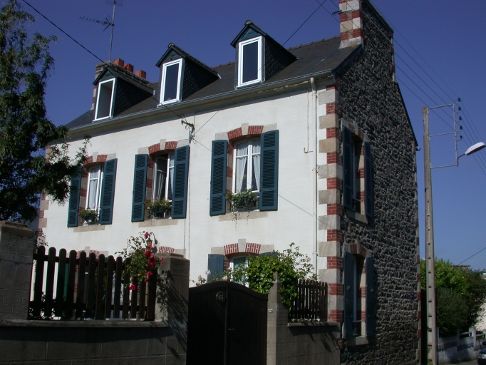 Maison de type ternaire construite en moellons de granite et schiste. L'entourage des baies couvertes en plate-bande avec clé de granite et les chaînes d'angles harpées présentent une alternance de brique rouge et de granite à ton clair. Elle est composée d'un rez-de-chaussée, d'un étage carré et d'un étage de comble.