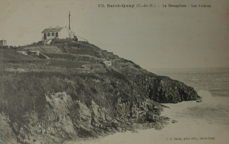 Il fut édifié vers 1860. Afin de prévenir toute invasion ennemie, les Romains avaient déjà installé une tour de guet sur la Pointe du Sémaphore. Idéalement placé en un endroit où la côte peut être surveillée sur des dizaines de lieues, devenu par la suite "cabane" de douanier, cet édifice disparut au début du 18e siècle. Un premier sémaphore sera construit en 1860 et le bâtiment actuel verra le jour en 1986. D'ici, à une hauteur de 100 mètres au dessus du niveau de la mer, toute la baie de Saint-Brieuc se découvre au regard. Selon les sources historiques, les Romains avaient déjà installé une tour de guet sur cette pointe avancée sur la mer. Le premier sémaphore de Saint-Quay a été construit en 1860. En 1986, le mat en bois fut abattu et le bâtiment rehaussé d'une salle de garde, avec une architecture particulière.