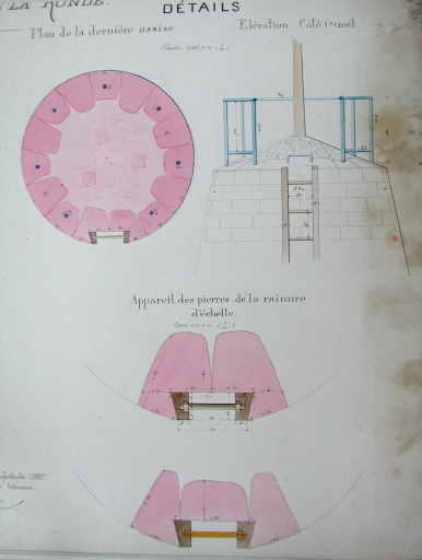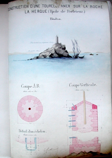 Le balisage en pierre de la circonscription du Portrieux est le suivant : Les tourelles de la Hergue, Madeux, Herflux, La Longue, La Ronde, La Moulière et le Gourvelot. Les amers remarquables : Le Pommier (rocher blanc avec tour demi circulaire) et Porz Moguer (tour blanche demi circulaire). Nous avons particulièrement étudié les tourelles de la Hergue et de la Ronde, datées de 1884-1885, dont les plans aquarellés sont conservés aux Archives départementales. Quand on parcourt le chenal du Portrieux aux îles Saint-Quay, en venant du Nord, on trouve, du côté des roches de St-Quay, la tourelle de la Madeux, qui signale l'extrémité Nord-ouest de la chaîne, le phare de l'Île Harbour, la tourelle de Herflux, la balise de la Ronde et la bouée de la Roselière, à la pointe sud-est des roches. On a, du côté de la terre, le rocher blanchi de la Hergue, la tourelle des Moulières de Potrieux, la balise de l'Aiguillette, la tourelle du Gorvelot, le fanal de la jetée, la balise de Port Es Leu (ces trois derniers ouvrages correspondant à l'entrée du port), et enfin le tourelle blanche du Four. Ce balisage est daté du 3ème et du 4ème quart du 19ème siècle. Les gabarres de Plouézec et le chaland du services des Phares de Bréhat participèrent au transport des matériaux pour les deux tourelles de la Hergue et de la Ronde. 25 marées furent nécessaires pour l'édification de la tourelle de la Ronde en 1884.