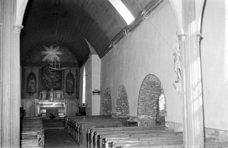 Eglise du 17ème siècle, remaniée au cours de la 2ème moitié du 19ème siècle (baies). La sacristie et la tour occidentale sont datées respectivement de l'année 1829 et 1852 (dates portées).