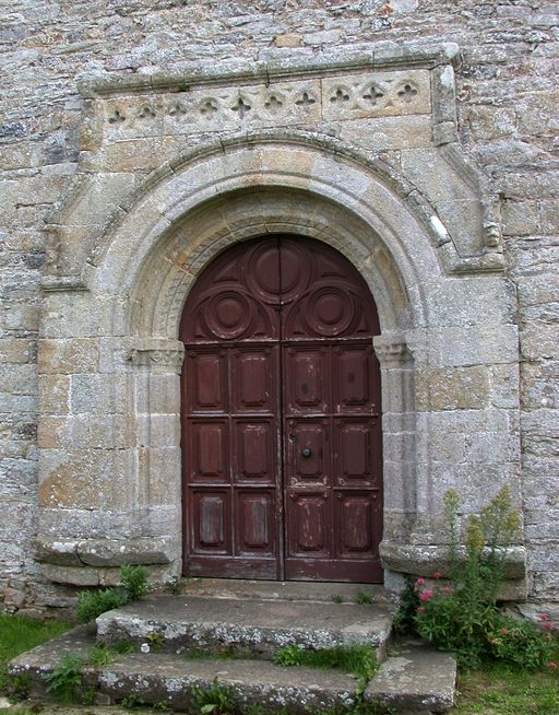 Le placître de l'ancienne église, l'état de conservation et l'environnement immédiat de la chapelle plaident en faveur d'une sélection. Le portail, généralement daté du 12ème siècle en raison de l'arc plein-cintre et, notamment, de la présence de dents de loup rappelant le style roman, d'influence normande, date du début du 15ème siècle. L'archivolte à retours, les colonnettes et les quadrilobes suggèrent en effet une datation plus tardive. Cette formule s'avère toutefois très atypique.