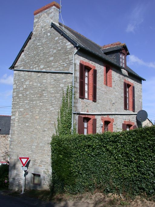 Maison dont le gros-oeuvre est édifié en moellons de schiste (pierre de Saint-Cast) et dont l'encadrement des baies est édifié en brique à l'arrière et alterne brique et schiste (pierre de Saint-Cast) à l'avant. Prenant jour à l'avant et à l'arrière, elle est composée d'un étage de soubassement abritant une remise à automobile, d'un rez-de-chaussée surélevé, d'un étage carré et d'un comble. La façade antérieure présente trois travées : deux travées jumelées à droite, une travée formant un mur-pignon à décrochement saillant à gauche. L'escalier de distribution intérieur est placé au droit de l'entrée.