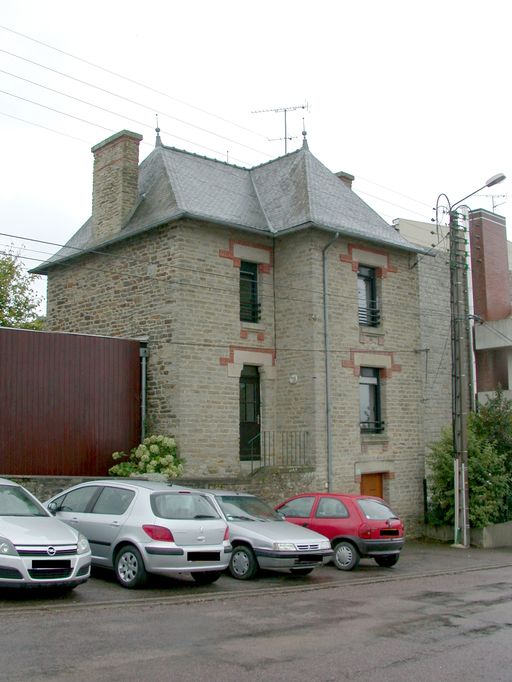Maison construite en moellons de schiste. Elle est composée d'un étage de soubassement, d'un rez-de-chaussée très surélevé et d'un étage carré et présente une toiture débordante sommée de deux épis de faîtage en zinc. La façade antérieure, qui est édifiée en moellons de pierre de Saint-Cast soigneusement équarris, présente deux travées, la travée de droite étant en ressaut. Le linteau des baies de la façade antérieure, dont celui de la porte d'entrée reposant sur des coussinets, est souligné par un bandeau de brique.