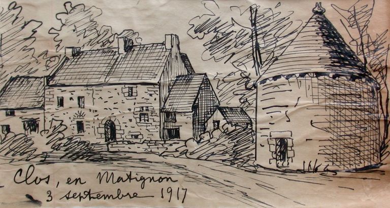 AD Côtes-d'Armor : fonds Frotier de La Messelière, 60 J 197, catalogue de cartes postales et de croquis à la plume : L'Abbaye - La Hardouinaye.
