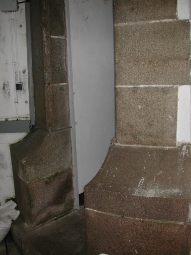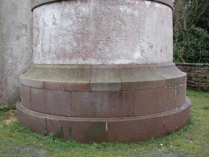 Descriptif détaillé de la construction La tourelle cylindrique en maçonnerie lisse avec plate-forme supérieure est en maçonnerie de pierres apparentes. Le plan-masse : II s'agit d'une simple tourelle cylindrique en maçonnerie au sommet de laquelle est installé l'appareil d'éclairage. Un petit bâtiment servant dans un premier temps de magasin est accolé à la tour. La tourelle est située sur un petit terrain entouré d'un mur d'enceinte en maçonnerie de pierres apparentes, gris et haut de 1,90 mètres. Les dimensions principales de l'édifice : hauteur de la tour au-dessus du niveau du sol : 15,50 mètres. hauteur de la tour au-dessus du niveau des plus hautes mers : 79 mètres. hauteur du foyer au-dessus du niveau du sol : 14,50 mètres. hauteur du foyer au-dessus du niveau des plus hautes mers : 78 mètres. Elévation et distribution intérieure par niveau : La tourelle est établie sur un massif de fondation de forme circulaire de 1 mètre de hauteur et de 4,20 mètres de diamètre. Au-dessus de cette fondation la tourelle est circulaire et se compose : - d'un socle cylindrique de 1,25 mètre de hauteur totale, composé d'une première partie de 0,425 mètre de hauteur et de 4 mètres de diamètre, d'une seconde partie 0,575 mètre de hauteur, en retrait de 0,11 mètre sur la première et d'un chanfrein concave d'une hauteur de 0,25 mètre. - d'un fût de 13,15 mètres de hauteur, ayant un diamètre de 3,20 mètres à la base inférieure et de 2,70 mètres à la base supérieure. - d'un bandeau placé à 1,15 mètre au-dessus du socle, présentant une hauteur de 0,50 mètre et une saillie de 0,05 mètre sur le fût de la tourelle. - d'une corniche de 1,25 mètre de hauteur composée de 5 bandeaux dont les deux supérieures forment des larmiers. - d'une couverture en pierre ayant la forme d'un cône circulaire de 2,95 mètres de diamètre à la base et de 1,15 mètre de hauteur. L'intérieur de la tourelle présente un cylindre creux de 1,40 mètre jusqu'au niveau du dessus de la corniche. Ce vide intérieur est occupé par la cage d'escalier. Les circulations et ouvertures : L'escalier donnant accès à la plate-forme supérieure où est placé l'appareil d'éclairage est à noyau plein. Le diamètre du noyau est de 0,20 mètre et de 0,30 mètre à partir des trois dernières marches. Les marches sont au nombre de 65. On pénètre à l'intérieur de la tourelle par une porte située dans l'ancien magasin aux huiles et de là directement dans la tour. On y accède par deux marches reposant sur un massif en maçonnerie. La tourelle est éclairée par deux fenêtres ouvertes du côté opposé à la porte d'entrée. Au sommet de la tourelle et à l'origine de la corniche se trouve une ouverture circulaire. Le centre de cet oeil de boeuf correspond au foyer de la lampe d'éclairage. Son rayon est de 0,40 mètre. L'ancien magasin aux huiles accolé est éclairé par une fenêtre rectangulaire. La mise en oeuvre : L'ensemble de la construction a été réalisé en maçonnerie de moellons ordinaires recouvert d'un enduit blanc donnant un aspect lisse à l'édifice. Le soubassement de la tourelle, la corniche, la calotte conique formant le toit, les marches de l'escalier ainsi que les marches en avant de la porte d'entrée, le dallage au bas de la tourelle, les pieds-droits et linteaux des fenêtres sont réalisés en maçonnerie de pierre de taille de granit de l'Ile Grande. La forme du toit de la tourelle est conique et la couverture en pierres de taille de granite.
