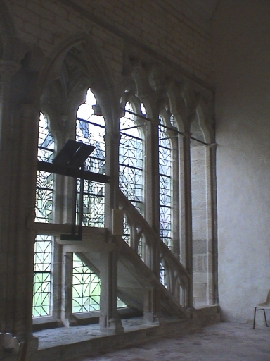 Côté Nord, le réfectoire est ouvert par de grandes baies donnant sur les jardins bordant la Rance. La chaire du lecteur à l'Est du mur est peut-être postérieure aux baies, sa voûte d'ogives et ses chapiteaux incitent à la dater du 14e siècle mais aucun élément probant ne permet de préciser cette datation.