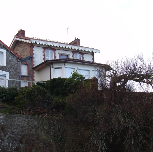 Maison remaniée, à double orientation et avec vue sur mer, dont le gros-oeuvre est couvert d'enduit lisse peint en blanc et le second-oeuvre est édifié en brique rouge. Le toit est recouvert de tuiles mécaniques et la façade postérieure sur mer présente un bâtiment rapporté. Éléments de décor : brique (souches de cheminée, encadrement des baies, chaînes d'angles), lambrequin, crête de toit en zinc.