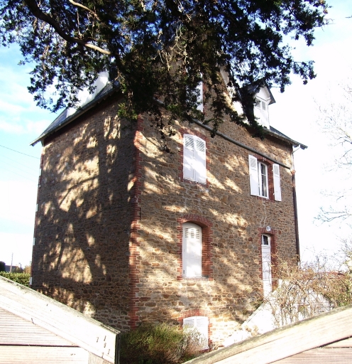 Maison à double orientation composée d'un sous-sol, d'un rez-de-chaussée surélevé, d'un étage carré et d'un étage en surcroît. Le gros-oeuvre est construit en moellons de granite, l'encadrement des baies et les chaînes d'angles en brique rouge. La façade antérieure sur rue, dont le gros-oeuvre est couvert d'enduit lisse peint en blanc, est rythmée par trois travées de baies et est animée par une avancée latérale à pignon agrémentée d'un bow-window à balcon.