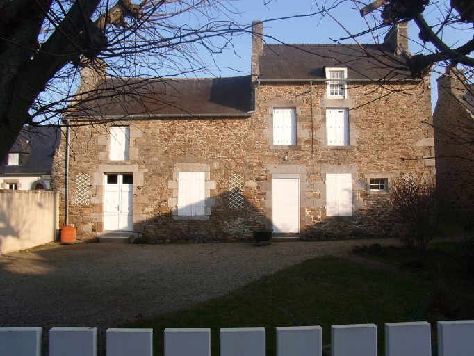 Maison haute de plan rectangulaire massé et dépendance latérale légèrement plus basse construites en moellons de granite laissés apparents. L'encadrement des baies, excepté la porte haute de la dépendance, sont en pierre de taille. La façade antérieure présente deux travées de baies jumelées décalées vers la gauche, la travée de gauche accueillant l'entrée. La dépendance comprend un comble à haut surcroît. Chaque pignon découvert à rampants à crossettes porte une souche de cheminée.