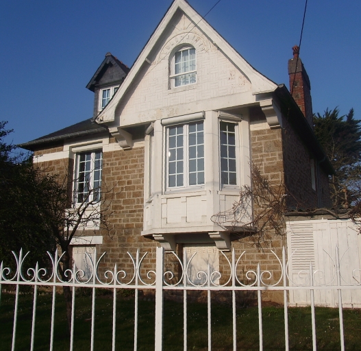Maison construite en moellons de granite équarris. Elle est composée d'un sous-sol semi-enterré, d'un rez-de-chaussée surélevé et d'un étage de comble. La façade antérieure sur rue présente un bow-window latéral en surplomb surmonté d'un pignon édifié en brique (appareil en damier). Éléments de décor : ferronnerie (clôture), brique.
