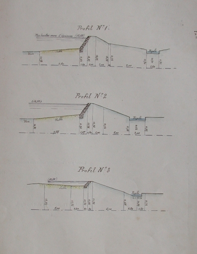 AD Côtes d'Armor. Série S ; sous-série Suppl. 163. Plan de la digue des Moines, 1871.