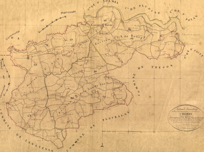 Située sur la Côte d'Émeraude, à une dizaine de kilomètres au nord-ouest de Dinan, Créhen est une commune littorale du département des Côtes-d´Armor au passé économique et social essentiellement rythmé par les activités agricoles [fig. 8-15]. D'une superficie totale de 1 821 hectares, le territoire communal, bordé par la Manche au nord via l'embouchure de l'Arguenon [fig. 17-18], est limitrophe des communes de Saint-Lormel et de Saint-Cast-le-Guildo à l'ouest, de Plancoët au sud-ouest, de Corseul au sud, de Languenan au sud-est, de Trégon et de Ploubalay à l'est et de Saint-Jacut-de-la-Mer au nord.