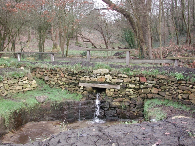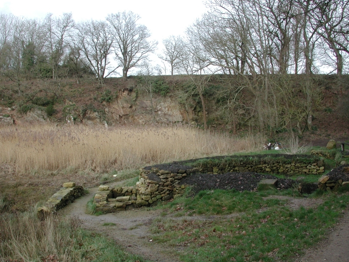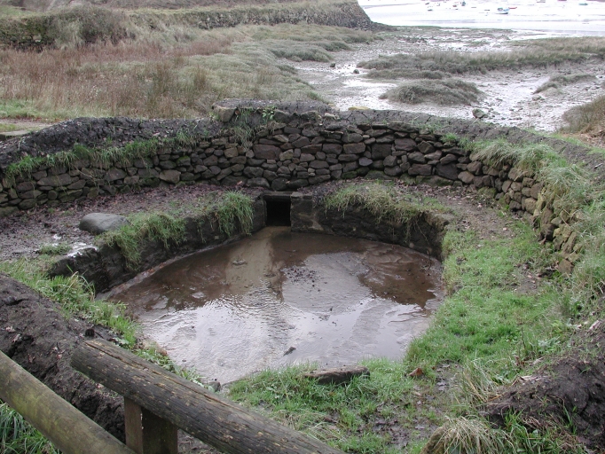 Les murets et les petits ouvrages liés à l'eau, reconstitués au pied du château du Guildo, ont été réalisés en pierres sèches (schiste et grès). Le bassin de retenue d'eau, associé à la fontaine, de forme ovale, mesure 8 mètres de diamètre. La fontaine de la Ménardais, construite en granite et en schiste, est située en contre-bas d'un pont-digue, où circule un petit affluent de l'Arguenon.