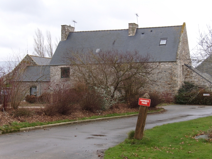 Ferme construite en moellons de granite et schiste sur un plan d'ensemble en U (logis de plan rectangulaire et dépendances perpendiculaires). Aspecté au sud, composé d'un rez-de-chaussée abritant probablement deux pièces principales, d'un étage carré et d'un étage de comble, le logis, dont le mur-pignon gauche présente des rampants à crossettes, a été agrandi, comme en témoigne des traces de reprise de la maçonnerie au droit du mur de refend montant de fond et portant souche de cheminée.