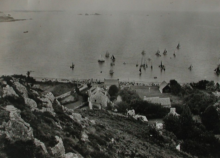 Le front de mer de la baie de Launay, entre l'Arcouest et 'Launay Mal nommé' a été urbanisé dés le début du 20ème siècle. Cette partie littorale de la commune est devenue la villégiature d'un groupe d'universitaires scientifiques parisiens, à partir des années 1900-1920, que les descendants des familles de Louis Lapicque, Seignobos, Victor Auger, Georges Pagès, Paul Langevin, Marie Curie, Pierre Auger, Joliot, Jean et Francis Perrin, continuent aujourd'hui de fréquenter. Ce projet d'installation des frères Louis et Auguste Lapicque et de Charles Seignobos faisait suite à la proposition de Anatole Le Braz de quitter Port Blanc après la disparition en mer en 1901 d'une partie de sa famille. Le Braz connaissait et appréciait l'Ile de Bréhat et n'eut pas de difficultés à convaincre ses amis de séjourner en face à l'Arcouest. A cette époque, il n'existait aucune maison sur le plateau de l'Arcouest, à part une simple chaumière en ruine. Louis Lapicque acheta plusieurs terrains et fit construire en 1904 la première maison ('Roc'h Ar Had'). Cette grande parcelle, située sur la pointe de l'Arcouest, fut revendue en plusieurs lots à des amis, si bien que ce secteur allait devenir un village en bord de mer, que l'on appellera par la suite 'Sorbonne Plage'. Seignobos y fit construire en 1910 sa maison 'Taschen Bihan'. Ces intellectuels partageaient les mêmes convictions politiques et laïques (Dreyfusards). De plus, ils avaient un patrimoine culturel commun et formaient un réseau assez fermé dans cet îlot résidentiel de l'Arcouest. Ils fréquentaient peu la population locale et se liaient davantage aux artistes séjournant à Bréhat, et qui eux aussi venaient de l'extérieur. Seul Frédéric Joliot aimait partir à la pêche avec les pêcheurs locaux. Celui-ci se joignait régulièrement aux artistes de l'Arcouest, séjournant à la pension 'Chevoir'. Cet établissement était construit au fond de la baie de Launay. En 1926, Eugène Schueler (ancien élève du professeur de la Sorbonne Victor Auger), industriel parisien et fondateur de la société de cosmétiques Oréal, vint s'installer à l'Arcouest. Il fit construire en bord de mer une villa, agrémentée de colonnades. Ce ne fut la seule originalité. En effet, il fit aussi clôturer son terrain, ce qui n'était pas dans les habitudes de ses voisins 'Arcouestiens'. Cette propriété privée, habitée aujourd'hui par la famille Bettencourt, contrarie le tracé du sentier littoral de l'Arcouest, en empêchant le public d'avoir un accès direct à la mer. Pendant la seconde moitié du 20ème siècle, de nouvelles constructions apparaissent avec les nouvelles générations. Jean Perrin, Pierre Joliot-Curie, Paule Lapicque vont conforter leur emprise foncière sur ce petit territoire. Leur présence va attirer de nouvelles formes de tourisme et faire connaître les paysages maritimes entre la côte et l'archipel de Bréhat. En 1919, une remise pour vedette à moteur est accordée dans la baie de Launay. En 1923, les 26 marins pêcheurs de Launay pétitionnaires réclament une cale de 50 mètres de long afin de pouvoir débarquer la pêche d'une dizaine de bateaux dans ce havre ouvert au Nord-Est. Port-Launay était en train de naître à l'usage des pêcheurs mais aussi des plaisanciers. En 1934, Gabriel Primet, armateur du langoustier 'Jeannette' demandait une concession sur le DPM afin d'établir des poteaux pour faire sécher ses filets à côté des cabines de bains. Ces nouveaux usages de la grève de galets de Launay inaugurait la mixité entre les pêcheurs et les plaisanciers. Cependant, les constructions balnéaires sur le linéaire côtier de l'Arcouest et la baie de Launay vont rester relativement peu nombreuses, modestes et discrètes, cachées dans la végétation, grâce à l'application de la Loi Littoral. Dans les années 1990, le Conseil général des Côtes-d'Armor a acquis des terrains sur le site de Rohou, comme 'espaces littoraux remarquables', protégés et ouverts au public. On peut néanmoins remarquer que le site portuaire de l'Arcouest est aujourd'hui très urbanisé, avec de nombreux commerces.