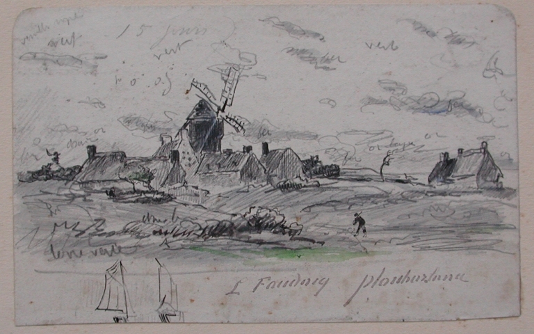 AD Côtes d'Armor. 6 M 926-627-931. Le moulin à vent de Crec'h Baëlan ou de Loguivy est indiqué sur le plan de l'Isle de Bréhat, daté de 1666 par Pierre Collin.