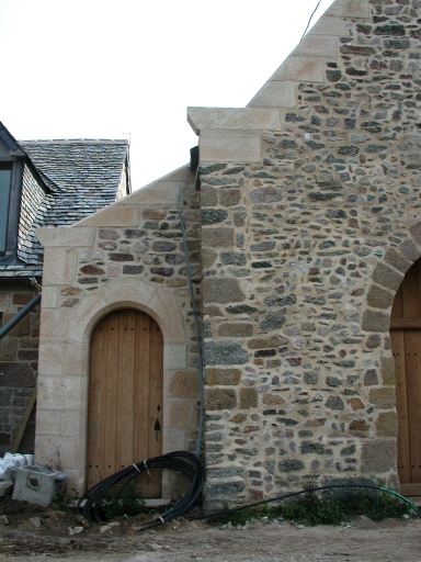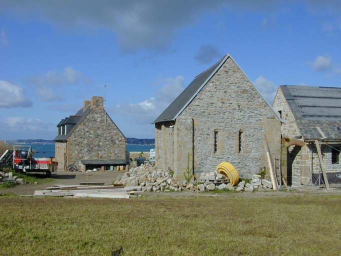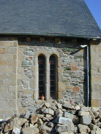 La chapelle est de plan rectangulaire et mesure à l'intérieur 9 mètres de longueur sur 6 mètres de largeur hors d'oeuvre et 7, 50 mètres de hauteur (façade principale). Les murs sont en moellons de granite, de grès, de schiste et de tuf vert. Les contreforts des angles et des gouttereaux sont en appareil irrégulier de granite rose. La façade principale orientée à l'Ouest présente une porte ogivale et la façade Est, un chevet plat. Les façades latérales Nord et Sud sont percées de plusieurs fenêtres simples ou jumelées, chanfreinées, de type meurtrière, couvertes d'un arc monolithe (en pierre de taille de granite). Le chevet est éclairé par deux fenêtres symétriques, de même largeur extérieure que celles du mur Sud. Le mur latéral Nord est percé d'une porte à 1, 80 mètre de l'angle de la façade et d'une fenêtre au milieu du panneau entre le contrefort central et le chevet. Le linteau entaillé et arrondi de cette fenêtre correspond à une voûte romane à l'intérieur. L'intérieur à vaisseau unique est doté d'une charpente en plein cintre lambrissée et éclairée par des ouvertures largement ébrasées. Un clocheton surélevé domine la toiture. La toiture originale était à l'origine en bois couverte de dalles de schiste. Elle est aujourd'hui couverte d'ardoises de Sizun en lauze de schiste. Le sol est dallé en schiste. On peut remarquer deux niches dans le mur du pignon Sud et une niche dans le mur de la façade latérale Nord. L'abbatiale était flanquée autrefois d'un assez grand bâtiment qui était percé de meurtrières. Il n'existe plus aujourd'hui.