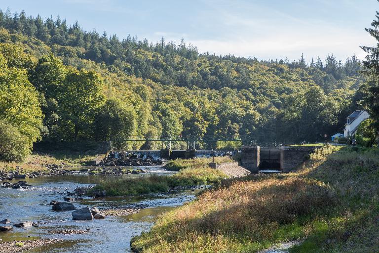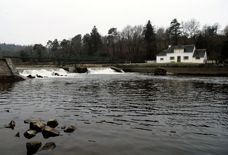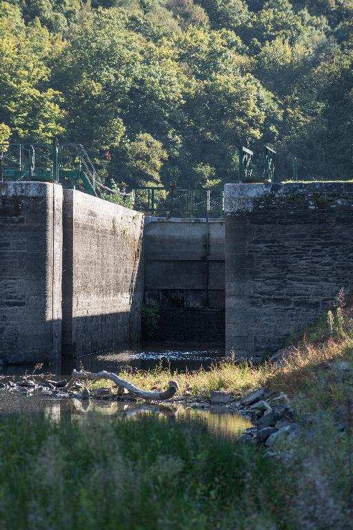 Écluse à sas ; pierre de taille de granite et grand appareil de schiste. État actuel : portes récentes. Déversoir & vanne au niveau de la porte amont. Déversoir rectiligne. État actuel : rampe à kayak ; passerelle métallique récente ; culées : moellons de grès et granite. Vanne au centre du déversoir. État actuel : vanne récente : béton.