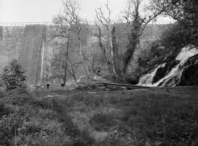 Le barrage a été construit par l'ingénieur Droeling, sous la direction des ingénieurs Lenglier et Guy Bouëssel. Les travaux ont été concédés à l'entreprise Richard de Glomel, en 1831 ; réception des travaux en 1838. Pendant la construction, l'ingénieur Lenglier propose d'élever la digue de 18m et de la renforcer par des contreforts ; la proposition est refusée, car jugée trop coûteuse ; surélévation permise : 2 m. En 1906, construction de quatre contreforts de 200 m3 chacun, qui renforcent le barrage.